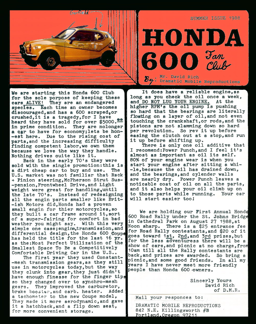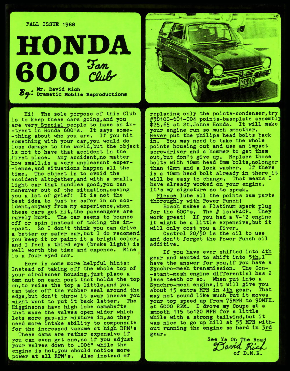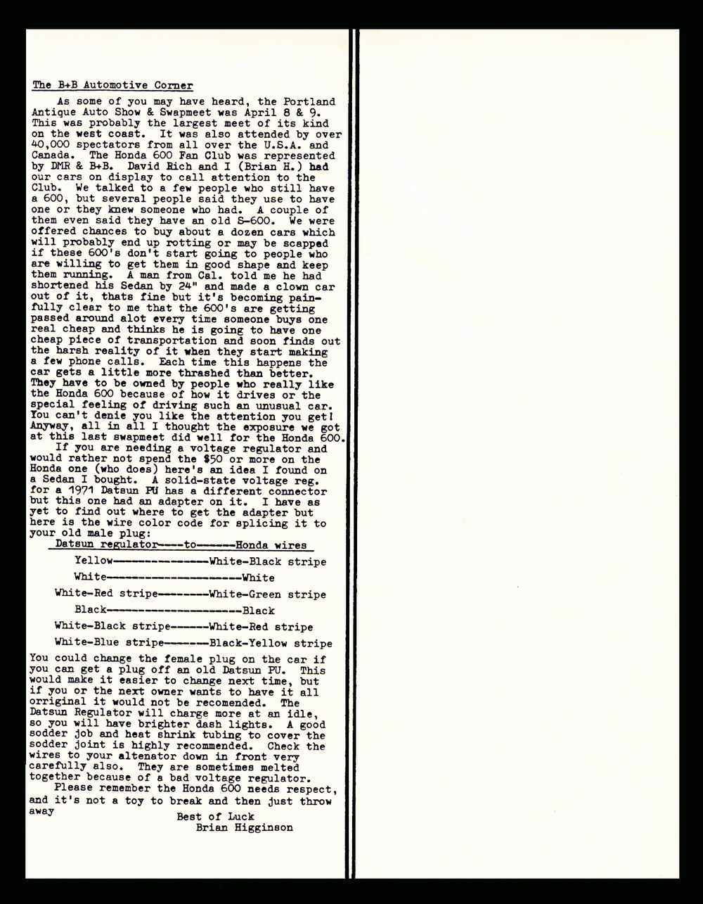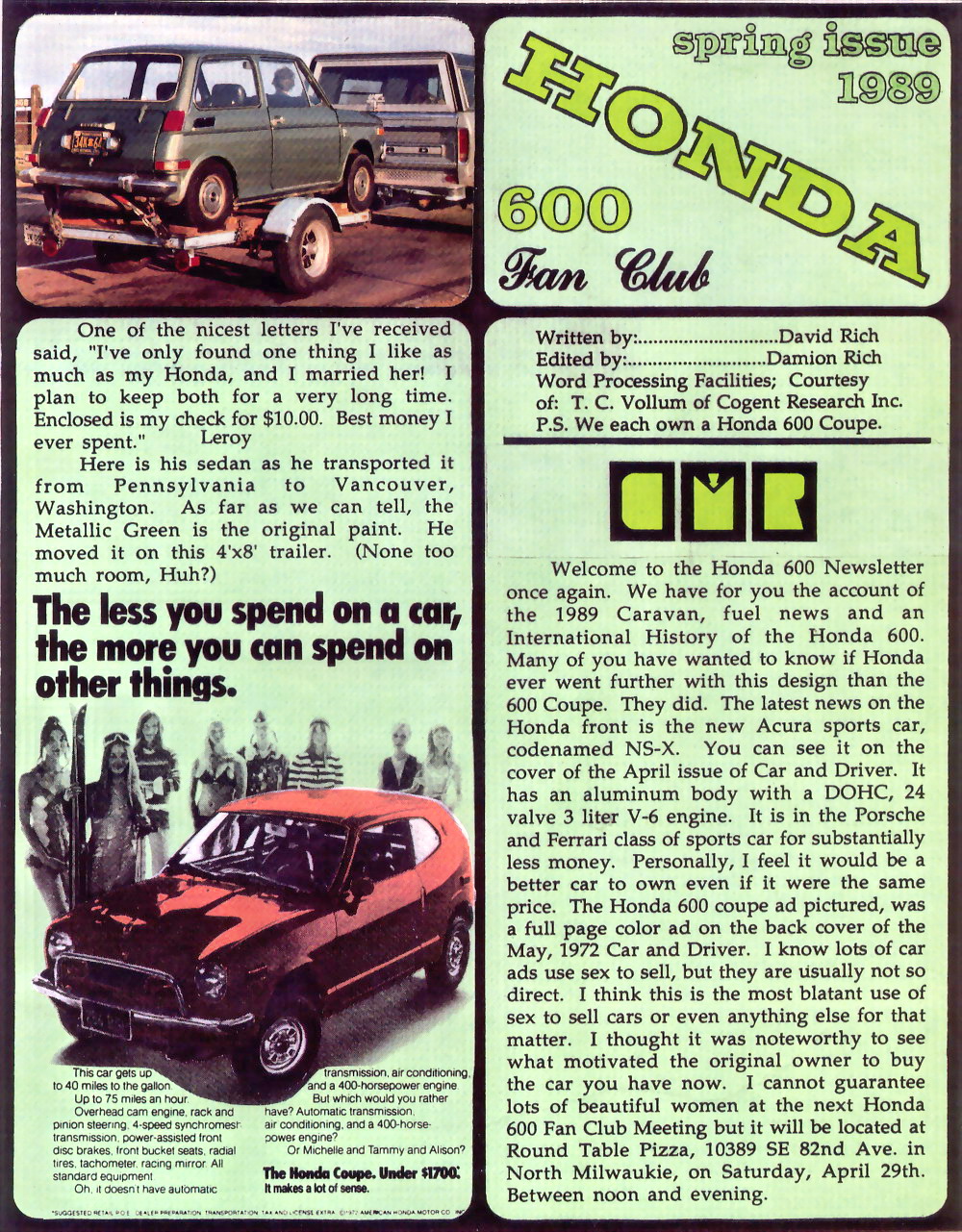 Here is a copy of the first news letter I published. Click on these images to see the full screen images to read. I tried to share good information about the care of these cars. I wanted to involve all those who are into these littl cars, even if they are my competition. I hosted Blaine's car on the cover, who runs B&B Automotive. They had been working on these cars longer than I had begun in late 1981. |